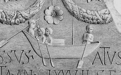 Fluss-Frachtschiff auf dem Grabstein des Blussus und seiner Frau, ca. 40 n. Chr.