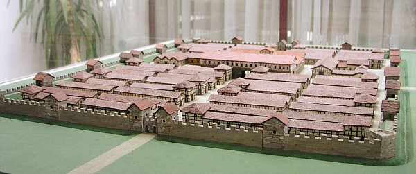 Modell des Alenkastells Aalen. Im Vordergrund das doppelbogige