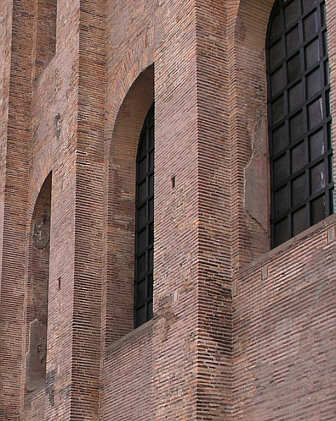 Trotz aller Umbauten und Zerstörungen blieben Reste des originales römischen Putzes in den Fensterlaibungen erhalten.