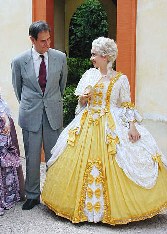 Im Bild: Finanzminister Gerhard Stratthaus mit einem Mitglied der Tanzgruppe "I Danzatori Palatini"