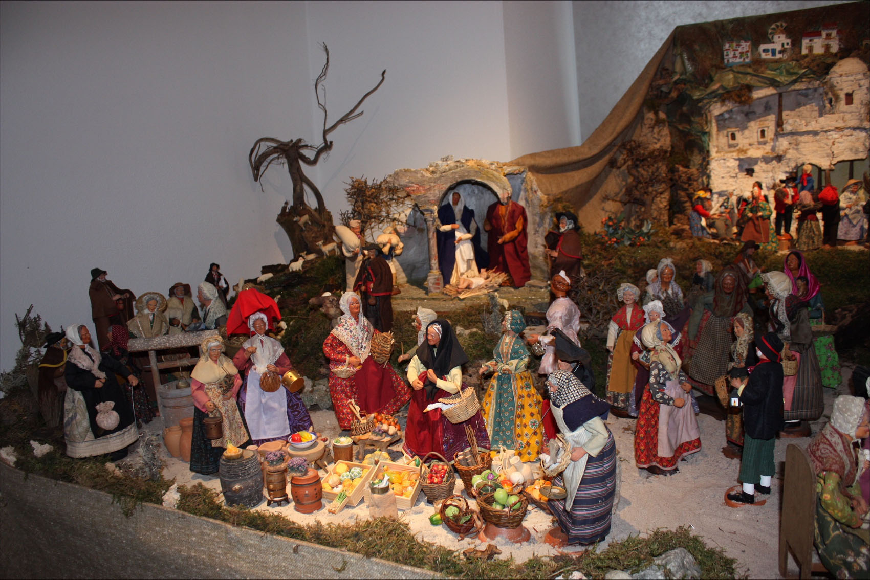 Krippe zu Bethlehem mit davor aufgebauter Marktszene. Foto Hansi Schmehle.
