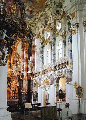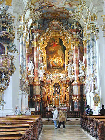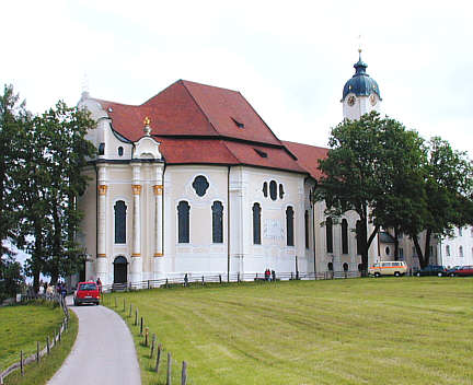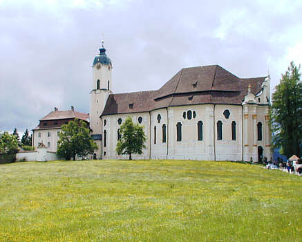Die Wallfahrtskirche zum Gegeißelten Heiland auf der Wies, kurz Wieskirche genannt, wurde errichtet von Baumeister Domeniko Zimmermann nach dem sog. Tränenwunder