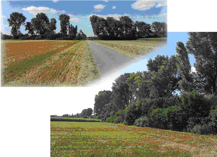 Baumreihe mit einem dazwischen liegenden Graben markiert. Folgt