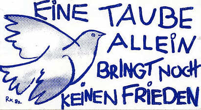 Aufkleber der Friedens-Bewegung: Eine Taube allein bringt noch keinen Frieden. 1982