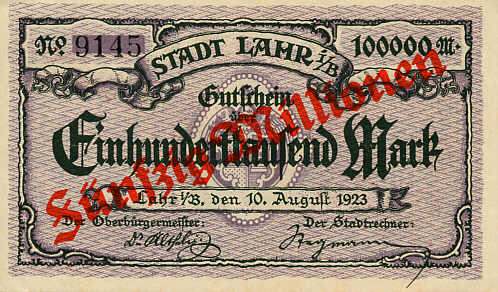 Gutschein über 100.000 Mark überdruckt: 50 Millionen