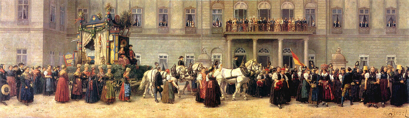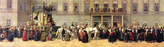 von Heinrich Issels steht die Hofgesellschaft, die dem Zug vom Balkon des