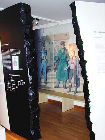 Blick in die Ausstellung mit Informationen, Grafiken und einer Hörcollage