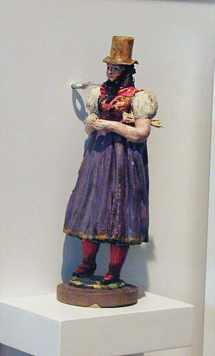 Obwohl es sich um eine Szene aus der Arbeitswelt der Strohflechterinnen handelt, trägt die Figur die Festtagstracht des Mittleren Schwarzwalds um Furtwangen.