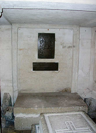 An der Wand zwei Bronzeplatten (1513) mit dem badischen Wappen bzw. einer Inschrift,