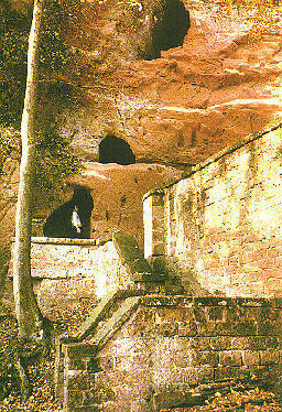 Burg BerwartsteinAlter Aufgang zur Burg mit Wohnhöhlen aus dem 12./13. Jahrhundert |