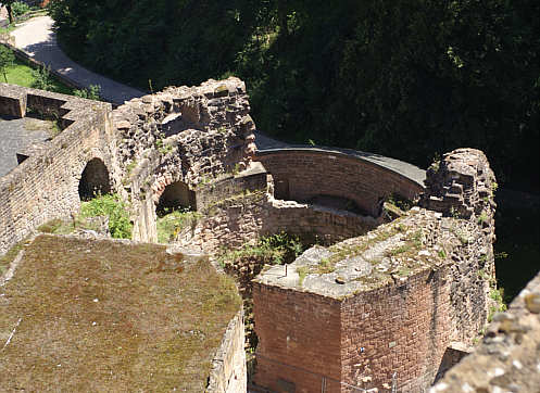 den vorderen Zugang zur Burg. Links in Bild der anstehende Fels,