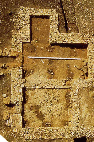 Hälfte des Badegebäudes mit Tepidarium (unten) und Caldarium