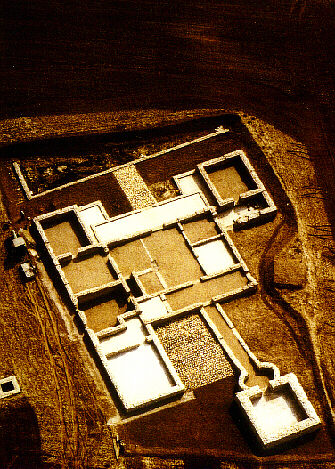 nach Westen (links unten). Vom Gebäude zieht sich ein Gang