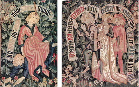 Wandbehang , zwei Fragmente, Basel, um 1480 mittlerer Teil, auseinandergeschnitten