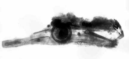 Röntgenbild zeigt sich der Radschloss-mechanismus des Gewehrs,