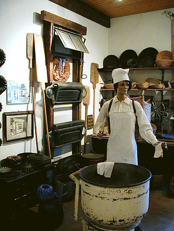 Die Bäckerei Vorne Teigrührmaschine, an der Wand Frontklappen eines Groß-Backofens