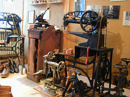 Die Schuhmacherei Nähmaschinen und andere Werkzeuge des Schuhmachers |