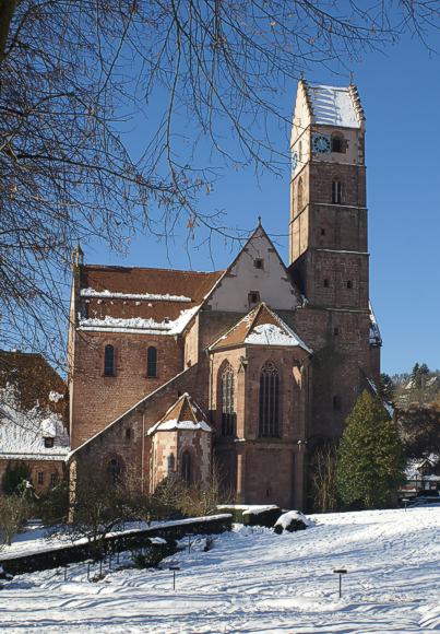 vorgestellt sind, erhebt sich die (später erneuerte) gotische