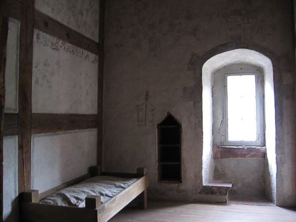 Unten: Schülerzelle mit Wandzeichnungen aus der Schulzeit (16. Jahrhundert)