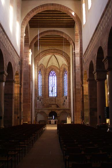 zu den Seitenschiffen. Diese ruhen auf Säulen mit Würfelkapitellen,