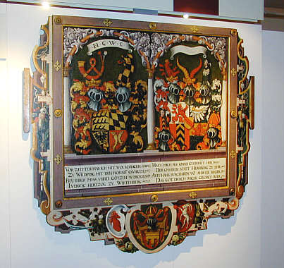 Tafel zur Erinnerung an die Weihe der Herrenberger Orgel Tannenholz, bemalt, Herrenberg 1579 Württemberg. Landesmuseum, Stuttgart |
