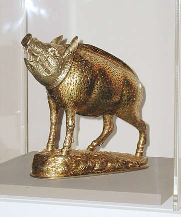 Die goldene Sau von Kandern Von Markgraf Georg Friedrich von Baden-Durlach anlässlich einer gelungenen Jagd gestifteter Trinkpokal in Form einer Sau Augsburg, um 1605. Silber, vergoldet Bad.. Landesmuseum, Karlsruhe |