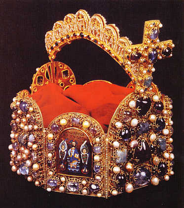 die Idee von der universalen, auf göttlichem Auftrag beruhenden Herrschaft in der Nachfolge Christi Ihr Sinnbild ist die Reichskrone, deren Platten das Himmlische Jerusalem abbilden. |