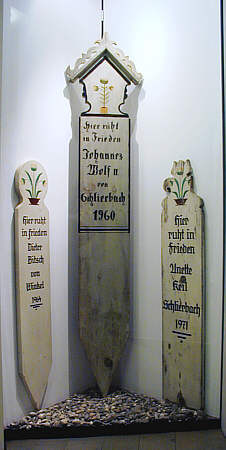 1610, solche aus Gusseisen sowie Stickel", bemalte hölzerne Grabtafeln