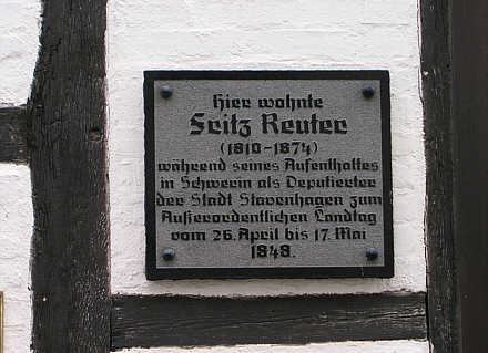 Tafel an dem Haus, in dem der niederdeutsche Dichter Fritz Reuter