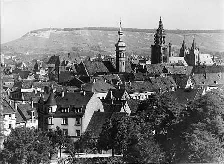Blick über die Stadt, rechts der turm der Kilianskirche Badische Bahnlinie Heidelberg - Heilbronn |