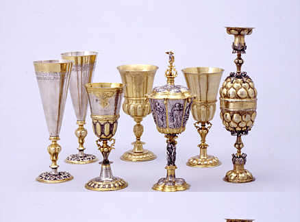 St. Georg 1600 Doppelpokal 1602 Himbeerpokal 1653 Gefäß in Pferdform 1665 Schiff-Pokal 1682 Deckelhumpen 1699 Nautiluspokale 1664-70