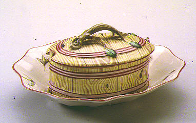 Lothringer FayencenButterdose auf PlatteLunéville, um 1765-70 Lothringer Erde mit bunter Aufglasurmalerei Foto: Badisches Landesmuseum Karlsruhe |