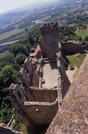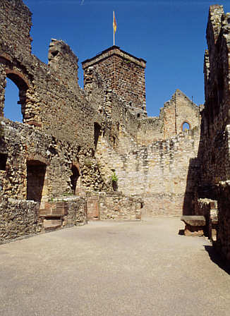 Burghof der Oberburg; im Hintergrund der hintere Bergfried