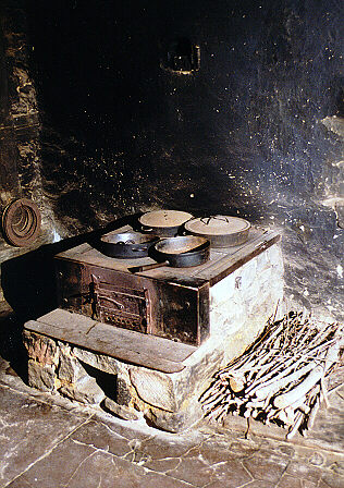 dem gemauerte Küchenteil des Vogtsbauernhofes in der Mitte