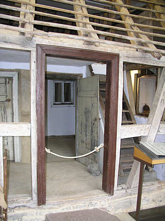Haustür mit Blick durch den Flur in die Küche. Rechts die Stiege ins Dachgeschoss.