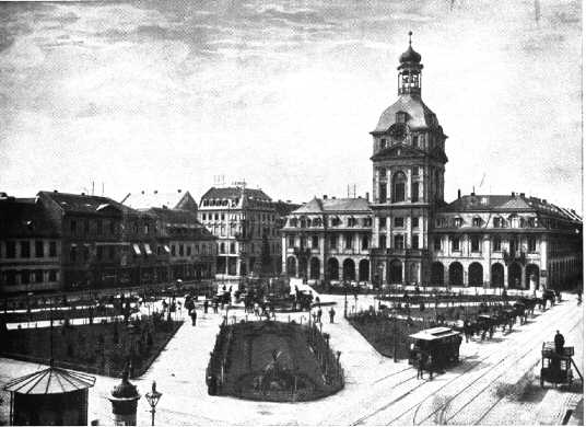 Mannheim, Paradeplatz mit Altem Kaufhaus (Rathaus der Stadt) vor der Zerstörung 1943