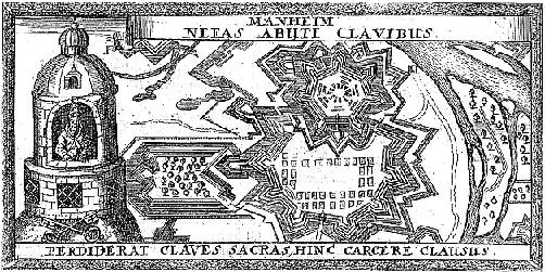 | Mit den Ereignissen des 30jährigen Krieges, die im böhmisch-pfälzischen Krieg 1622 die Eroberung Mannheims brachten, rückte die Stadt in den Mittelpunkt des Interesses der Karthographen. | |