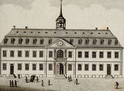 Kirche und Spital zum Heiligen Karl Borromäus; die Kirche 1730-33 errichtet, das Spital 1754/58 umgebaut. Das Spital bestand hier bis zum Neubau der Städtischen Krankenanstalten am Neckarufer 1922.