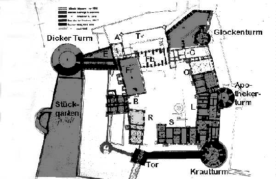 Ludwig V.(1508 - 1544) ist einer der bedeutendsten Bauherren im Heidelberger Schloß, was den Umfang seiner Bautätigkeit betrifft. Er ergänzte die Ostbefestigung seiner Vorgänger um den gewaltigen Stückgarten und den Dicken Turm im Westen.