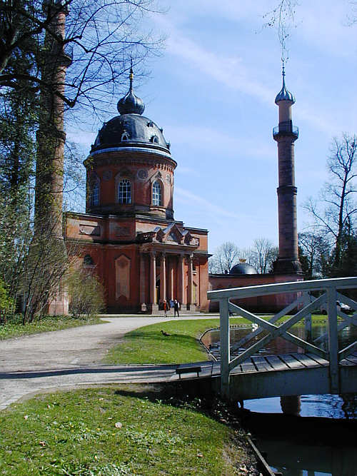 mit klassizistischem Portikus, Kuppel und zwei Minaretten