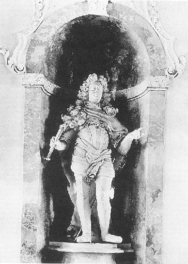 Nikolaus Moll: Kurfürst Carl Philipp von der Pfalz als kaiserlicher Feldmarschall. 1732.Standbild im Großen Sitzungssaal des alten Landtagsgebäudes in Innsbruck Vor seinem Regierungsantritt in der Pfalz 1716 war Carl Philipp österreichischer Gubernator in Tirol.