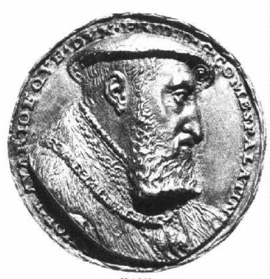 Bärtiges Brustbild des Kurfürsten mit Pelzmantel und flachem Hut nach rechts, um den Hals den Orden vom Goldenen Vlies. Auf der Rückseite 1535 datiert Umschrift: FRID: D.G. COMES PALATIN. RHOE: BAVARIOEQUE. DUX München, Staatliche Münzsammlung