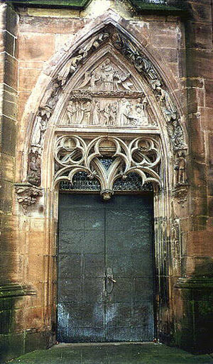 Johannes von Gmünd arbeitete auch in Basel, wo er das durch das Erdbeben von 1356 stark in Mitleidenschaft gezogene Münster wiederherstellte.