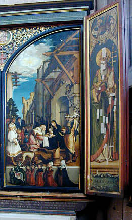 Familie des Stifters im Gebet (bei der Anbetung durch die Heiligen Drei Könige