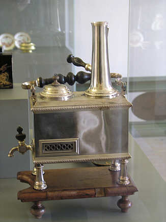 Teemaschine, Unterschalen, Teedose: Silber. Paris, 1717-1718 Wien, MMD-Museen des Mobiliendepots