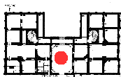 Schloss FavoriteSala Terrena Rechteckiger Raum mit abgeschrägten Ecken im Erdgeschoss des Schlosses, öffnet sich nach oben bis zur Dachlaterne. Blaue Fayencefliesen kontrastieren mit den rot-weißen Sandsteinplatten des Bodens und dem roten Stuckmarmor an Türgewänden und Wandpfeilern. |