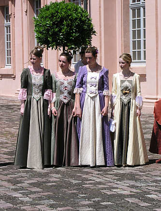 Dero hochfürstlicher Durchlaucht Ehrendamen im Hof des Schlosses zu Rastatt