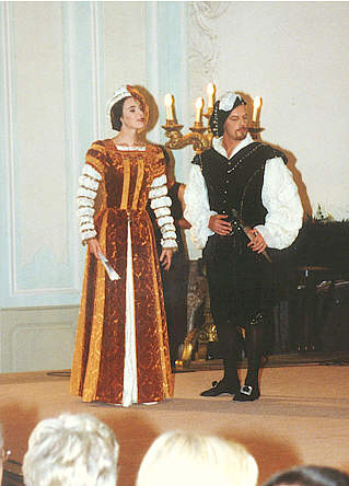 ist. Die Ärmel des Untergewands sind mit farbigen Borten gefasst. Der Mann trägt unter dem schwarzen Wams ein Kamisol mit bauschigen Ärmeln und eine Kniebundhose. Diese Kleidung würde durch die mantelartige Zimarra ergänzt. |