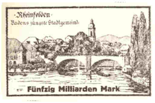 ![]() Ab 1923 begann jedoch die Inflation und die Kraftstrompreise stiegen bis auf das 3700fache und die Lichtstrompreise bis auf das 2500fache. Im Juli kletterten die Preise noch höher und deshalb ging man auf eine wöchentliche Zahlweise über, da eine monatliche Abrechnung zu nicht mehr kalkulierbaren Verlusten geführt hätte. Allerdings hatte diese Art der Abrechnung nicht lange Bestand, da in den ersten Oktobertagen die Strompreise in schwindelerregende Höhen stiegen und KWR auf sofortige Zahlung bestehen musste. Es wurde zwar genügend Strom an den "Mann" gebracht, aber da die Kunden Geldmangel hatten, was zu Engpässen bei der Zahlung führte, blieben kaum mehr Mittel für Löhne und laufende Ausgaben vorhanden. Auch anfallende Reparaturen und Erneuerungen mussten natürlich aufgeschoben werden. Die Bilanz von 1923 schloss mit einer unglaublichen Summe, nämlich 712.706.777.595.735.957,00.- (Siebenhundertzwölfbilliardensiebenhundertsechsbillionen) Reichsmark. Die Einführung der Rentenmark am 15. Oktober 1923 leitete auch die Konsolidierungsphase für die Kraftübertragungswerke Rheinfelden ein. Die wöchentliche Zahlweise wurde noch längere Zeit beibehalten, da Mittel auf andere Weise nur unzureichend zu beschaffen waren. Die völlige Normalität trat mit dem Übergang zur Reichsmark am 30. August 1924 wieder ein, was für alle Beteiligten natürlich eine große Erleichterung war. |