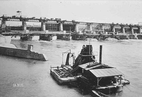 Bau des Wehrs in Augst-Wyhlen, 1909